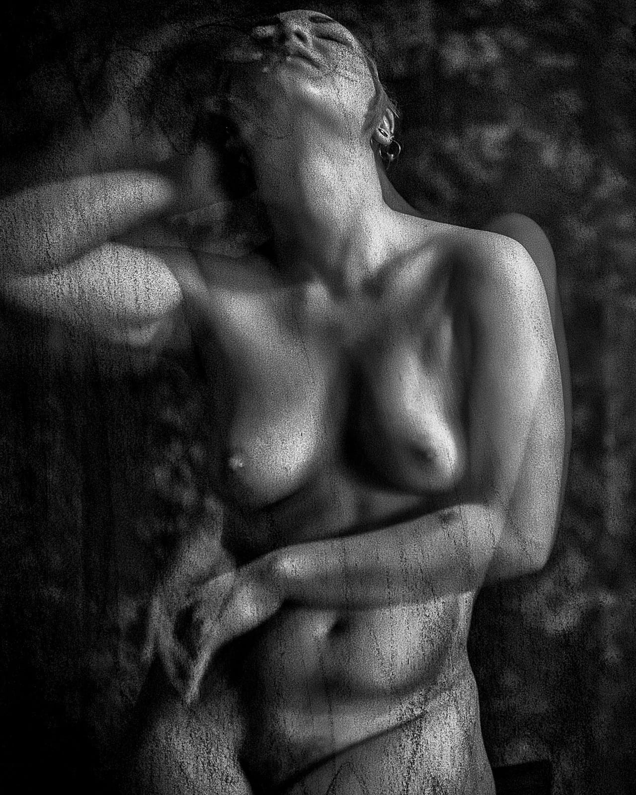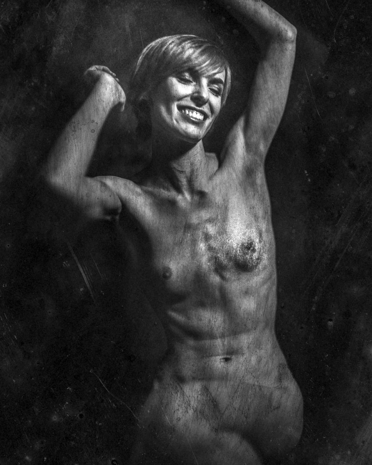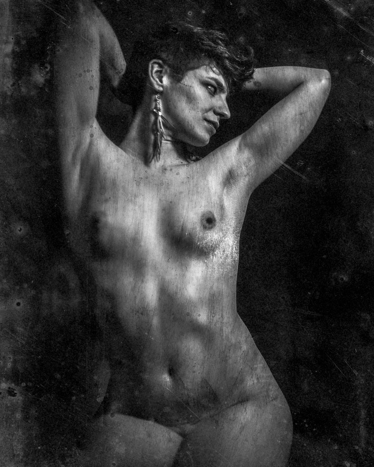 It was a fixed focal length and had a depth of field of fractions of inches. So I used the old school method of attaching a string to the front of the camera, and this is where the different participants would position themselves. On the back plate of the obscura I would draw scratches with charcoal pencils, ink marks, watercolor, etc. This was to give the images some texture, replicating that surface look you see on wet plates. I would print the images then add more scratches, etc., then scan again. Yeah, a very convoluted process. I love the results, not so much working with this camera.
